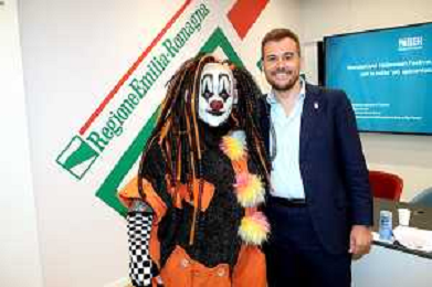 BOLOGNA14 10 2025 REGIONE EMILIA ROMAGNA CONFERENZA STAMPA "MONSTERLAND HALLOWEEN FESTIVAL"PRESENTA LA 15 EDIZIONE PER LA PRIMA VOLTA PRESSO AUTODROMO ENZO E DINO FERRARI DI IMOLA NELLA FOTO MASCOTE DELL'EVENTO E SINDACO DI IMOLA MARCO PANIERI FOTO GIANNI SANNA-AG ALDO LIVERANI SAS