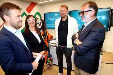 BOLOGNA14 10 2025 REGIONE EMILIA ROMAGNA CONFERENZA STAMPA "MONSTERLAND HALLOWEEN FESTIVAL"PRESENTA LA 15 EDIZIONE PER LA PRIMA VOLTA PRESSO AUTODROMO ENZO E DINO FERRARI DI IMOLA NELLA FOTO DA SINISTRA SINDACO DI IMOLA MARCO PANIERI,ASSESSORE REGIONEL DEL TURISMO ROBERTA FRISONI,WILLIAM GAY ORGANIZZATORE , DIRETTORE DELL'AUTODROMO DI IMOLA PIETRO BENVENUTI,PRESENTATRICE EVA GINI E MASCOTE DELL'EVENTO FOTO GIANNI SANNA-AG ALDO LIVERANI SAS
