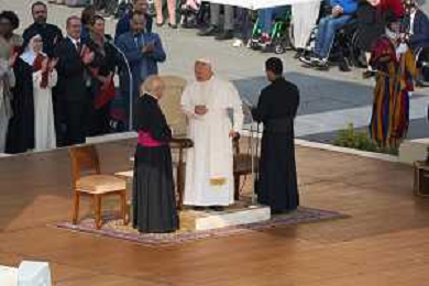 Citta’ del Vaticano - Roma 15 Ottobre 2025 Udienza Generale di Sua Santita’ Papa Leone XIV Nella foto: Papa Leone XIV - Il Crocifisso Foto Credit: Andrea Bracaglia- AGENZIA ALDO LIVERANI SAS