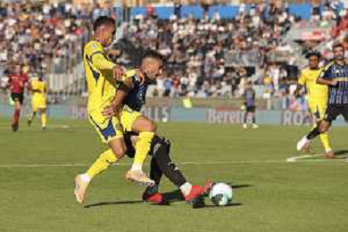 Amin Sarr of Hellas Verona FC battle for the ball with Antonio Caracciolo of Pisa SC during Pisa SC vs Hellas Verona FC, 7° Serie A Enilive 2025-26 game at Arena Garibaldi - Romeo Anconetani stadium in Pisa (PI), Italy, on October 18, 2025. (Photo by Davide Casentini) AG ALDO LIVERANI SAS