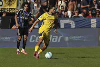Antoine Joseph Bernède of Hellas Verona FC competes for the ball during Pisa SC vs Hellas Verona FC, 7° Serie A Enilive 2025-26 game at Arena Garibaldi - Romeo Anconetani stadium in Pisa (PI), Italy, on October 18, 2025. (Photo by Davide Casentini) AG ALDO LIVERANI SAS