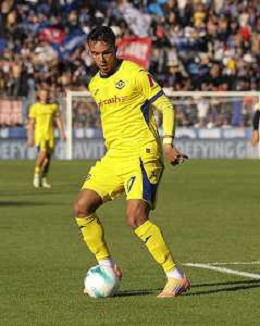 Ebenezer Akinsanmiro of Pisa SC play the ball during Pisa SC vs Hellas Verona FC, 7° Serie A Enilive 2025-26 game at Arena Garibaldi - Romeo Anconetani stadium in Pisa (PI), Italy, on October 18, 2025. (Photo by Davide Casentini) AG ALDO LIVERANI SAS