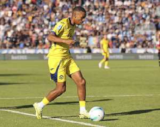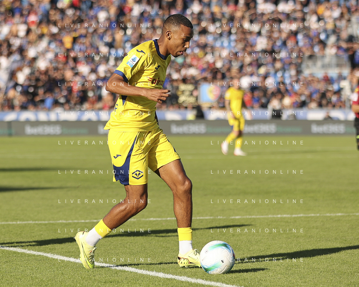 Giovane Santana do Nascimiento of Hellas Verona FC play the ball during Pisa SC vs Hellas Verona FC, 7° Serie A Enilive 2025-26 game at Arena Garibaldi - Romeo Anconetani stadium in Pisa (PI), Italy, on October 18, 2025. (Photo by Davide Casentini) AG ALDO LIVERANI SAS