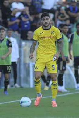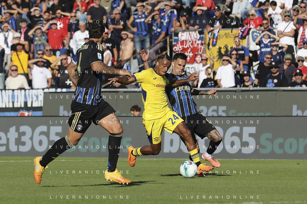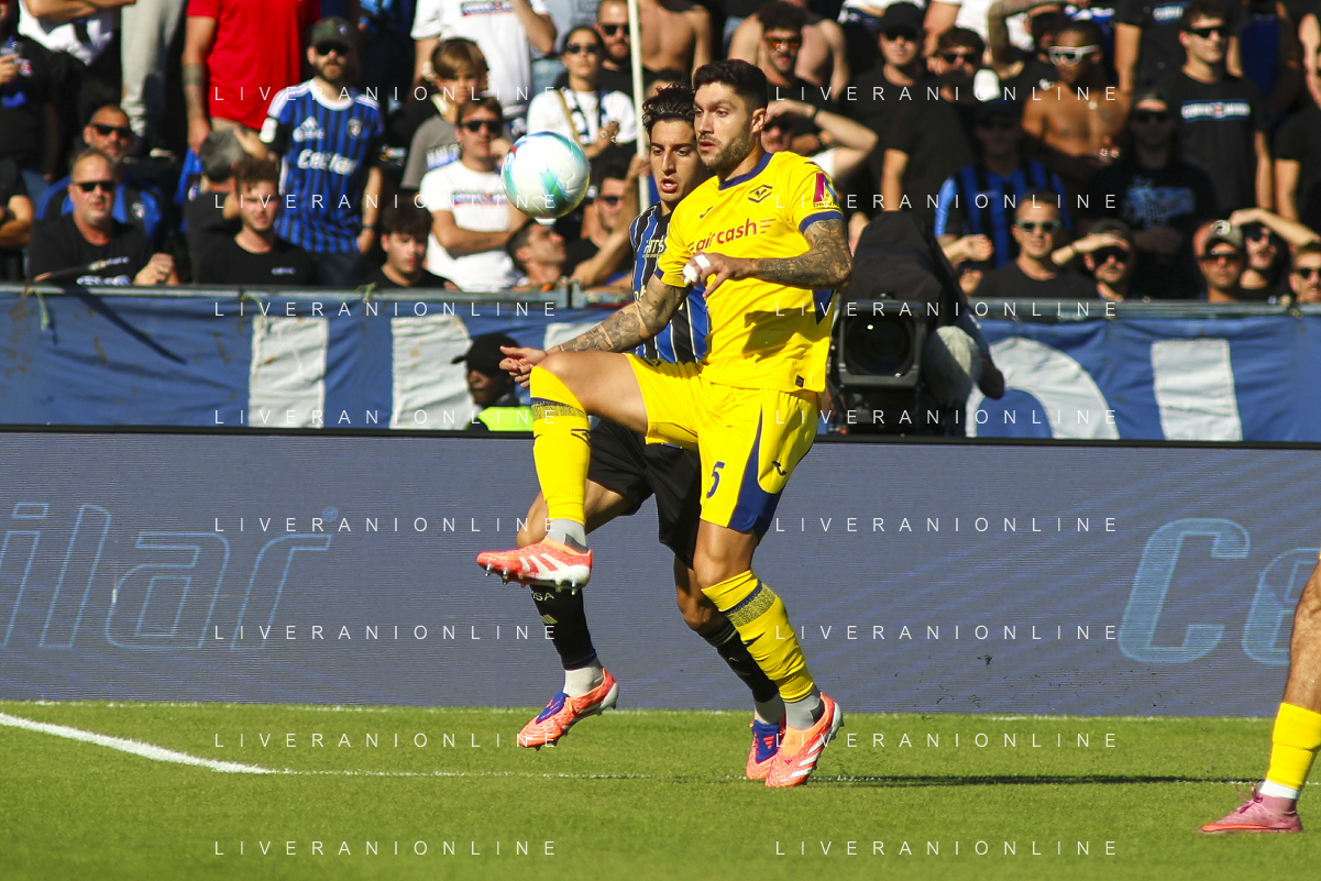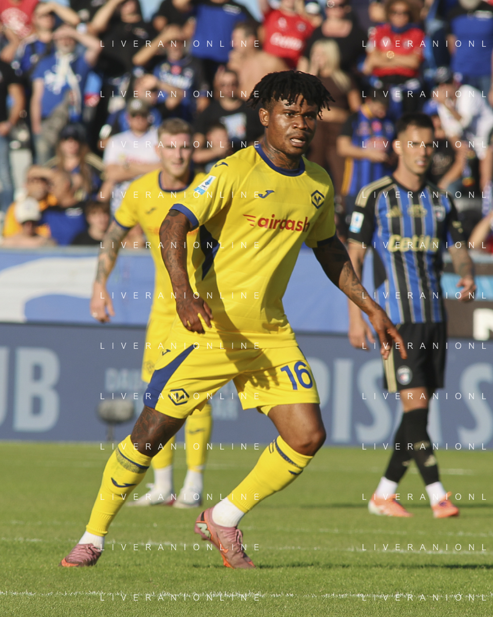 Jean-Daniel Akpa Akpro of Hellas Verona FC play the ball during Pisa SC vs Hellas Verona FC, 7° Serie A Enilive 2025-26 game at Arena Garibaldi - Romeo Anconetani stadium in Pisa (PI), Italy, on October 18, 2025. (Photo by Davide Casentini) AG ALDO LIVERANI SAS