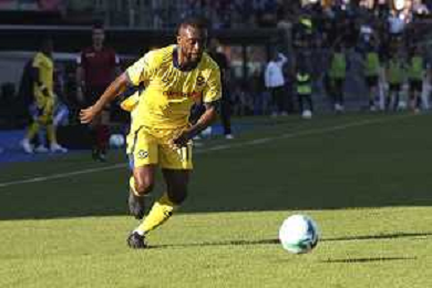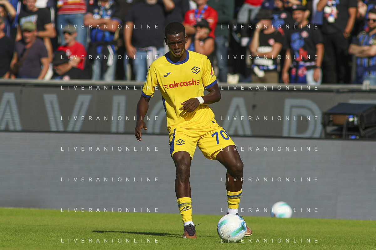 Fallou Cham of Hellas Verona FC play the ball during Pisa SC vs Hellas Verona FC, 7° Serie A Enilive 2025-26 game at Arena Garibaldi - Romeo Anconetani stadium in Pisa (PI), Italy, on October 18, 2025. (Photo by Davide Casentini) AG ALDO LIVERANI SAS