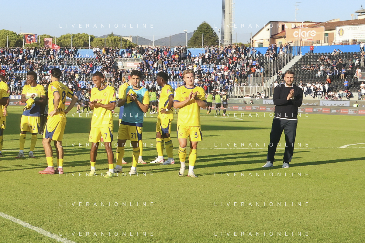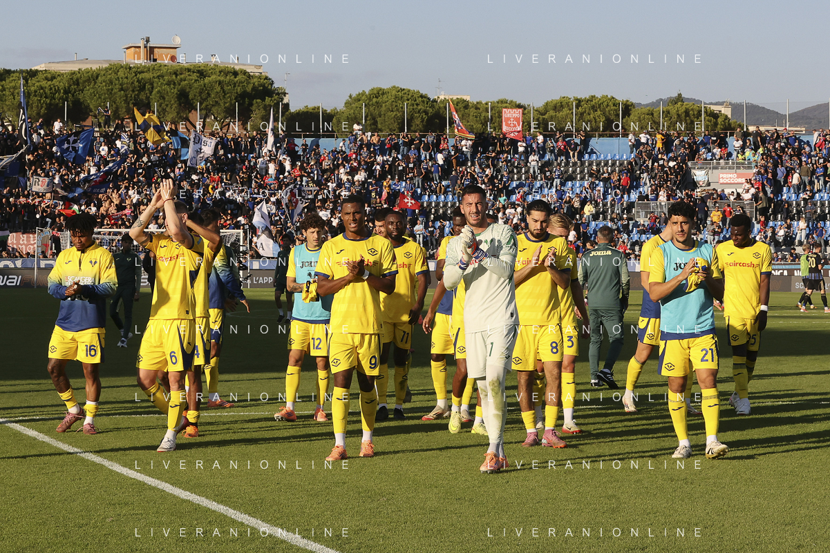 Hellas Verona players applaud the fans following the final whistle at the end of Pisa SC vs Hellas Verona FC, 7° Serie A Enilive 2025-26 game at Arena Garibaldi - Romeo Anconetani stadium in Pisa (PI), Italy, on October 18, 2025. (Photo by Davide Casentini) AG ALDO LIVERANI SAS