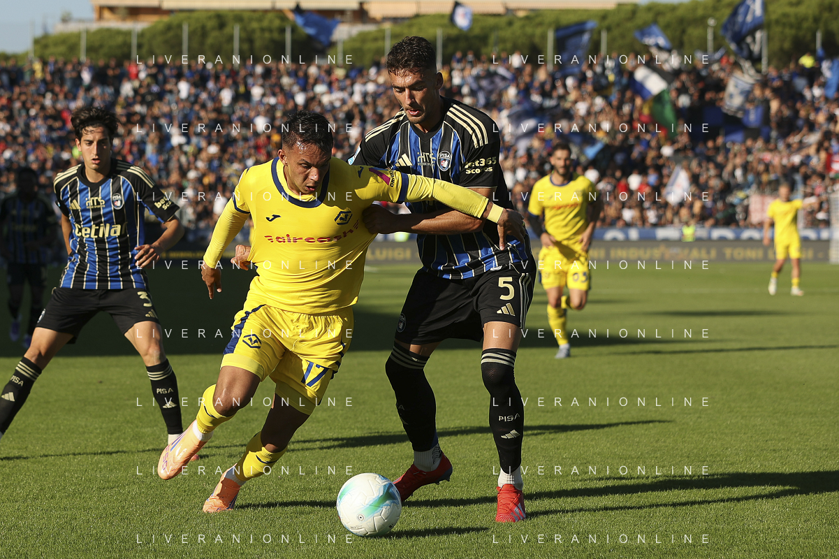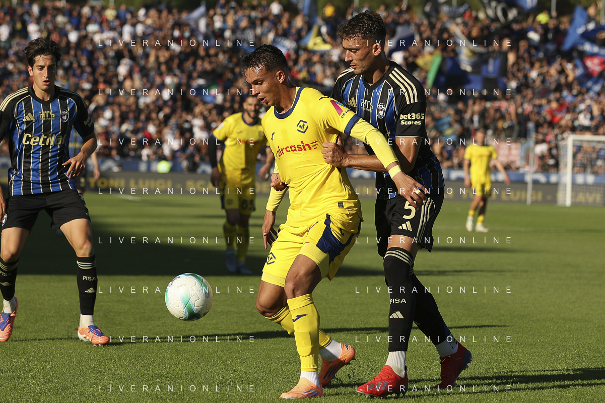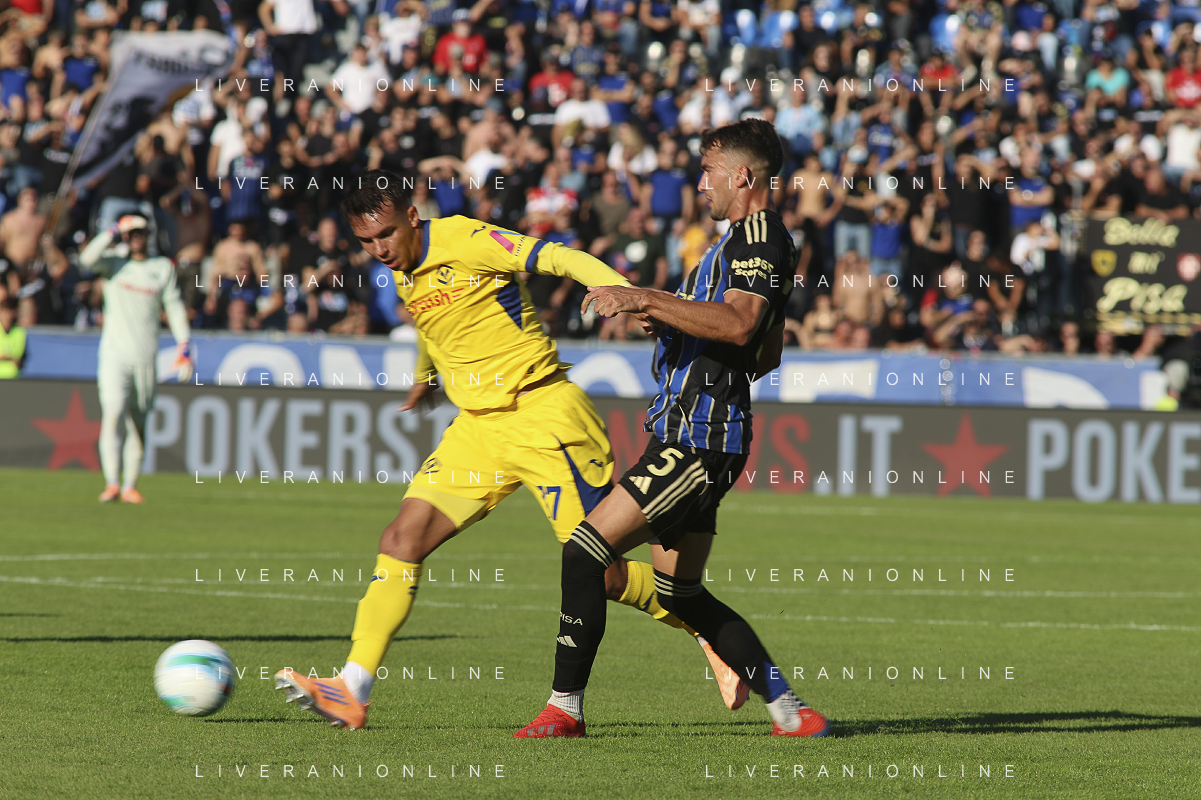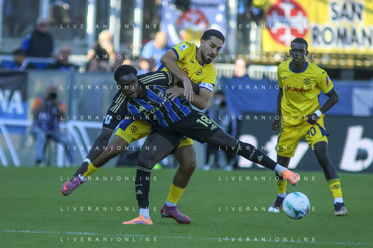 hv35 battle for the ball with Antonio Caracciolo of Pisa SC during Pisa SC vs Hellas Verona FC, 7° Serie A Enilive 2025-26 game at Arena Garibaldi - Romeo Anconetani stadium in Pisa (PI), Italy, on October 18, 2025. (Photo by Davide Casentini) AG ALDO LIVERANI SAS