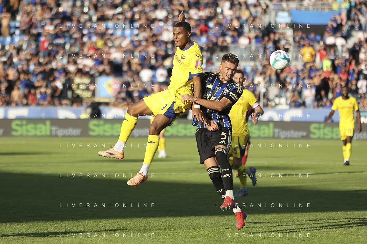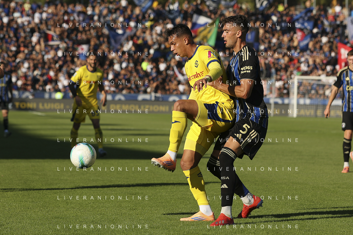 Jesus Santiago Perez "Yellu" of Hellas Verona FC competes for the ball with during Pisa SC vs Hellas Verona FC, 7° Serie A Enilive 2025-26 game at Arena Garibaldi - Romeo Anconetani stadium in Pisa (PI), Italy, on October 18, 2025. (Photo by Davide Casentini) AG ALDO LIVERANI SAS