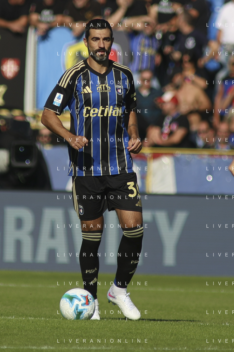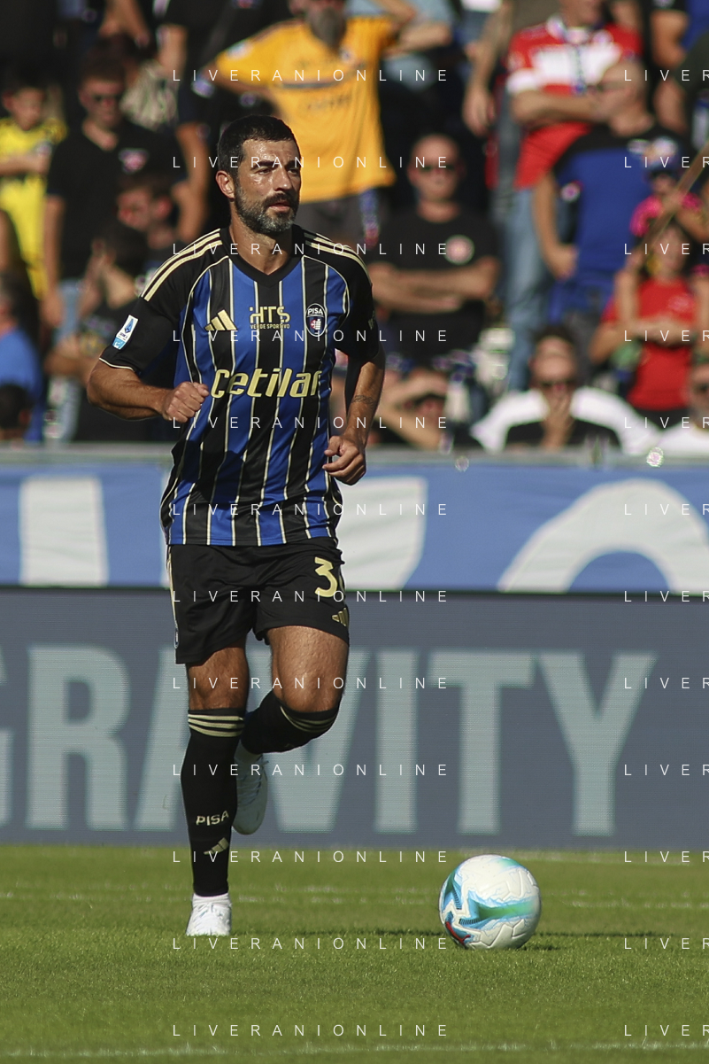 Raul Albiol of Pisa SC play the ball during Pisa SC vs Hellas Verona FC, 7° Serie A Enilive 2025-26 game at Arena Garibaldi - Romeo Anconetani stadium in Pisa (PI), Italy, on October 18, 2025. (Photo by Davide Casentini) AG ALDO LIVERANI SAS