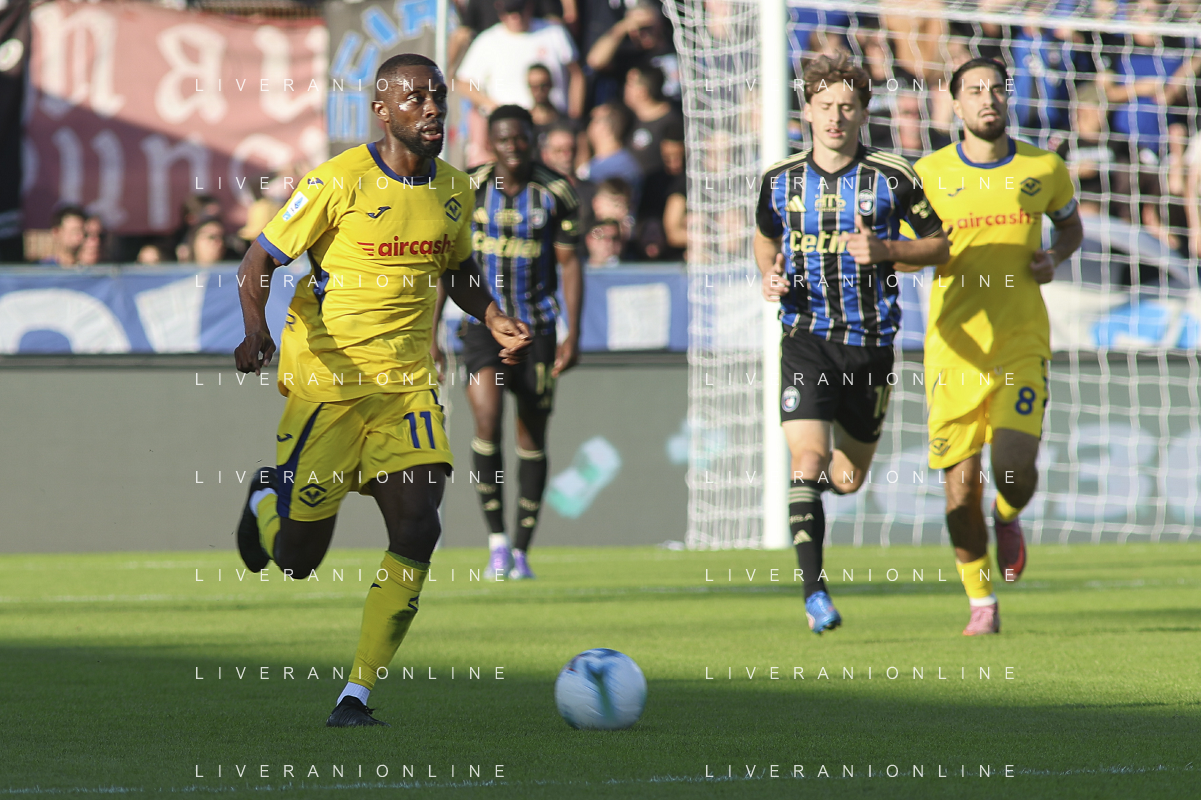 Jean-Daniel Akpa Akpro of Hellas Verona FC play the ball withduring Pisa SC vs Hellas Verona FC, 7° Serie A Enilive 2025-26 game at Arena Garibaldi - Romeo Anconetani stadium in Pisa (PI), Italy, on October 18, 2025. (Photo by Davide Casentini) AG ALDO LIVERANI SAS