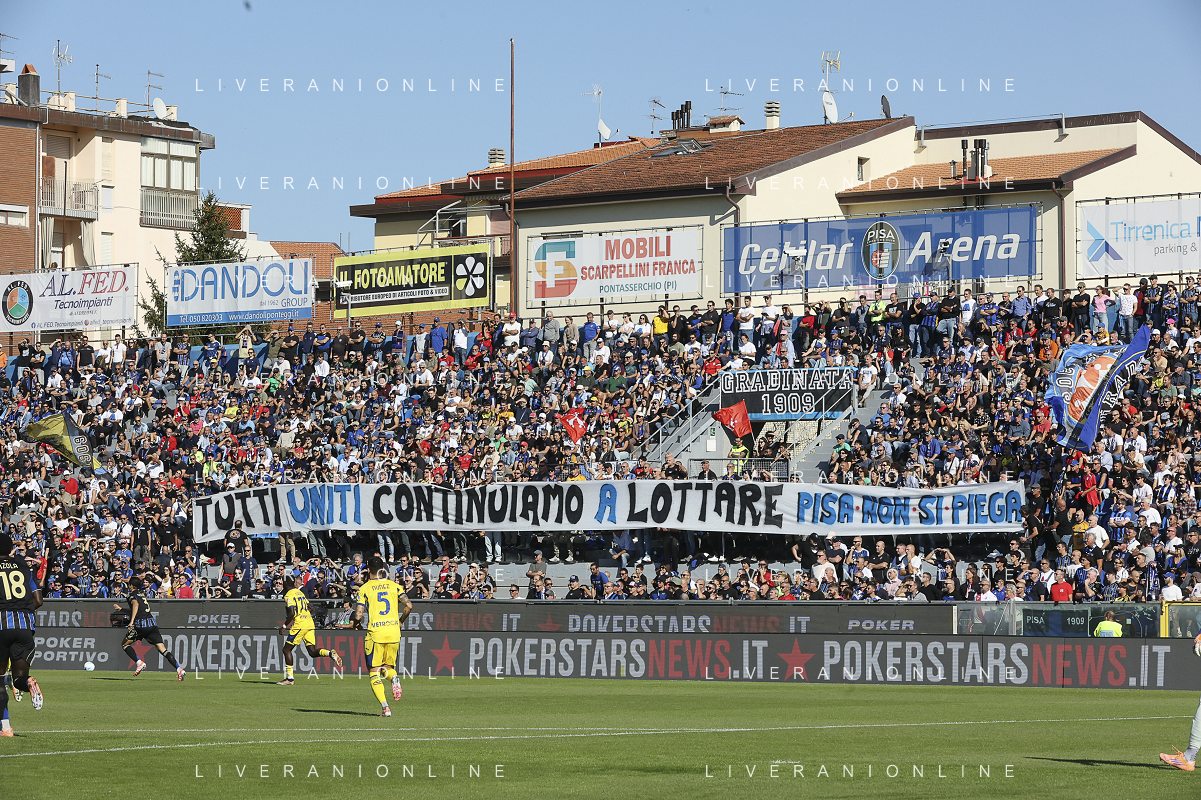 Pisa fans show their support during Pisa SC vs Hellas Verona FC, 7° Serie A Enilive 2025-26 game at Arena Garibaldi - Romeo Anconetani stadium in Pisa (PI), Italy, on October 18, 2025. (Photo by Davide Casentini) AG ALDO LIVERANI SAS