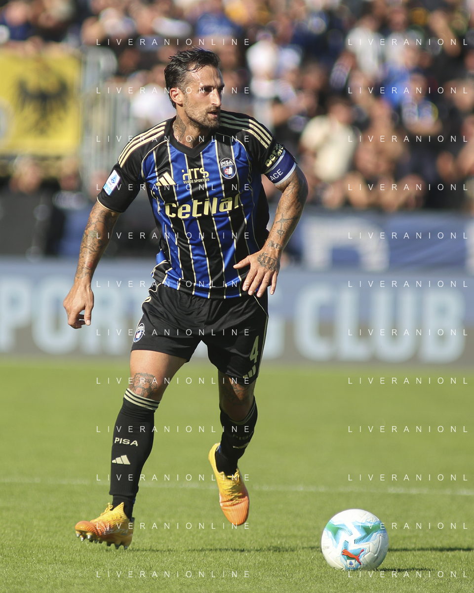 Antonio Caracciolo of Pisa SC play the ball during Pisa SC vs Hellas Verona FC, 7° Serie A Enilive 2025-26 game at Arena Garibaldi - Romeo Anconetani stadium in Pisa (PI), Italy, on October 18, 2025. (Photo by Davide Casentini) AG ALDO LIVERANI SAS