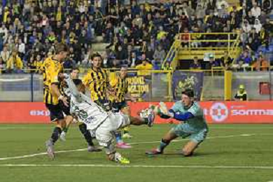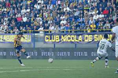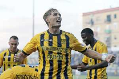 18 10 2025 - Castellammare di Stabia. Stadio Romeo Menti. Serie BKT. Juve Stabia-Avellino Nella foto gol 1-0 di Nicola Mosti Foto Giuseppe Cuozzo/Agenzia Liverani- AGENZIA ALDO LIVERANI SAS