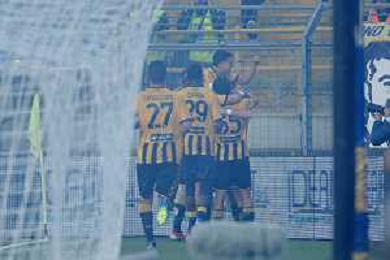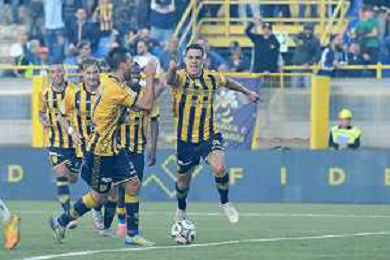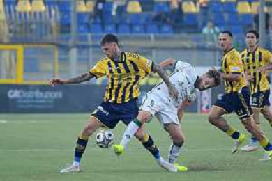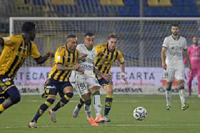 18 10 2025 - Castellammare di Stabia. Stadio Romeo Menti. Serie BKT. Juve Stabia-Avellino Nella foto esultanza finale Nicola Mosti Foto Giuseppe Cuozzo/Agenzia Liverani- AGENZIA ALDO LIVERANI SAS