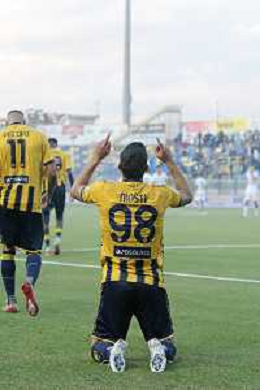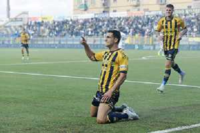 18 10 2025 - Castellammare di Stabia. Stadio Romeo Menti. Serie BKT. Juve Stabia-Avellino Nella foto esultanza di Nicola Mosti dopo gol 1-0 Foto Giuseppe Cuozzo/Agenzia Liverani- AGENZIA ALDO LIVERANI SAS