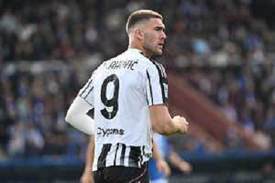TVRG Como vs Juventus nella foto Dusan Vlahovic (Juventus) Como 19-10-2025 Stadio Giuseppe Sinigaglia Como vs Juventus Campionato Serie A Enilive - 7a giornata foto Roberto Garavaglia/Agenzia Aldo Liverani sas