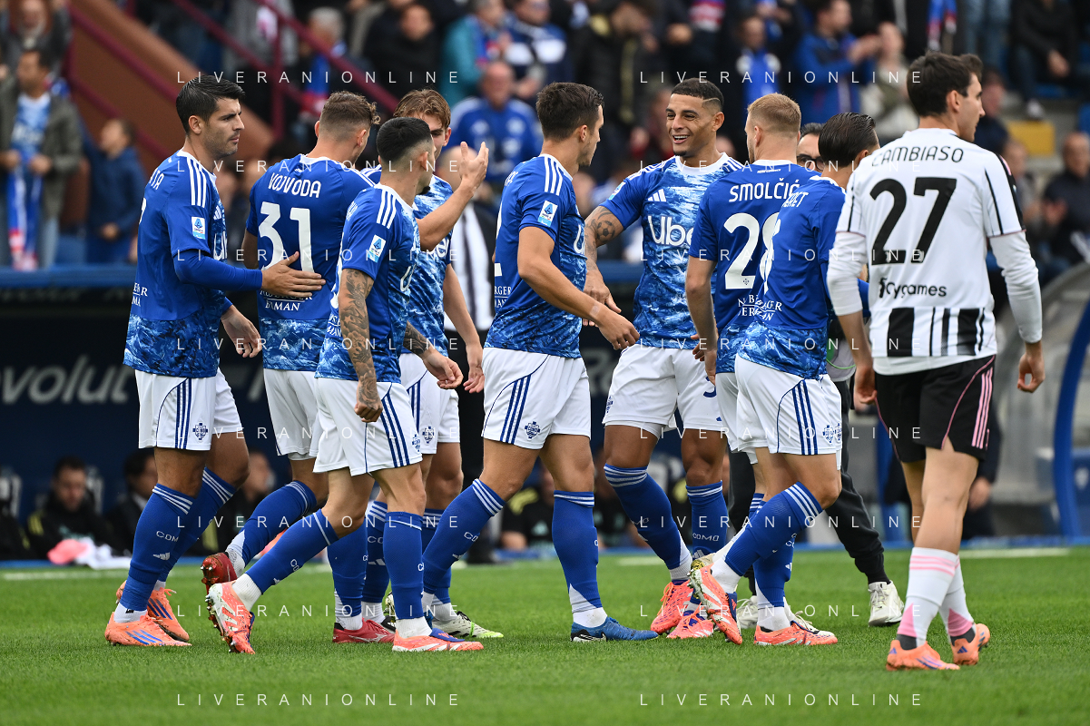 TVRG Como vs Juventus nella foto giocatori Como esultanza dopo il gol dell'1 a 0 Como 19-10-2025 Stadio Giuseppe Sinigaglia Como vs Juventus Campionato Serie A Enilive - 7a giornata foto Roberto Garavaglia/Agenzia Aldo Liverani sas