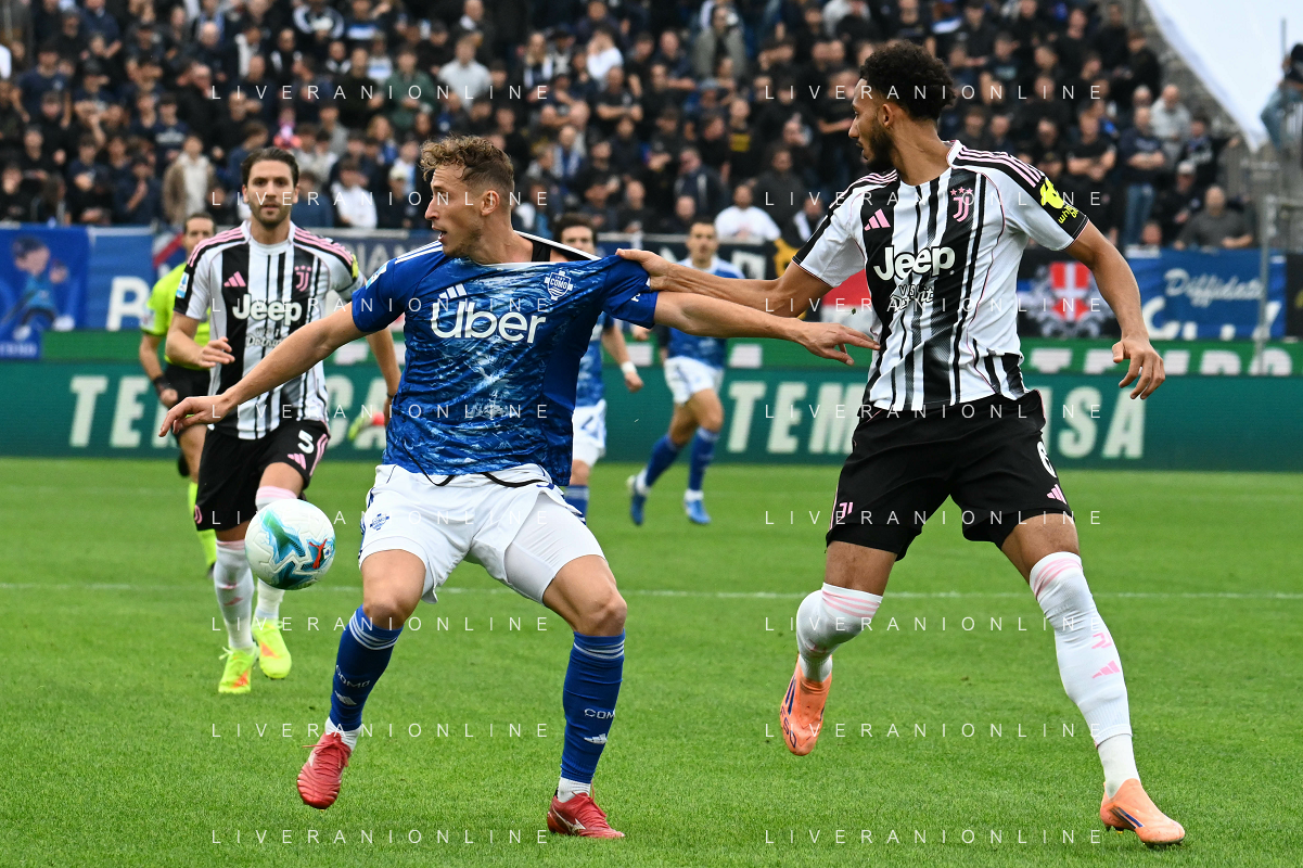 TVRG Como vs Juventus nella foto Nicolas Paz Martinez (Como) e Lloyd Kelly (Juventus) Como 19-10-2025 Stadio Giuseppe Sinigaglia Como vs Juventus Campionato Serie A Enilive - 7a giornata foto Roberto Garavaglia/Agenzia Aldo Liverani sas