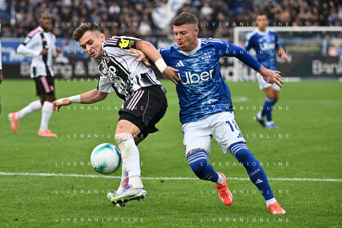 TVRG Como vs Juventus nella foto Francisco Conceicao (Juventus) e Alberto Moreno Perez (Como) Como 19-10-2025 Stadio Giuseppe Sinigaglia Como vs Juventus Campionato Serie A Enilive - 7a giornata foto Roberto Garavaglia/Agenzia Aldo Liverani sas