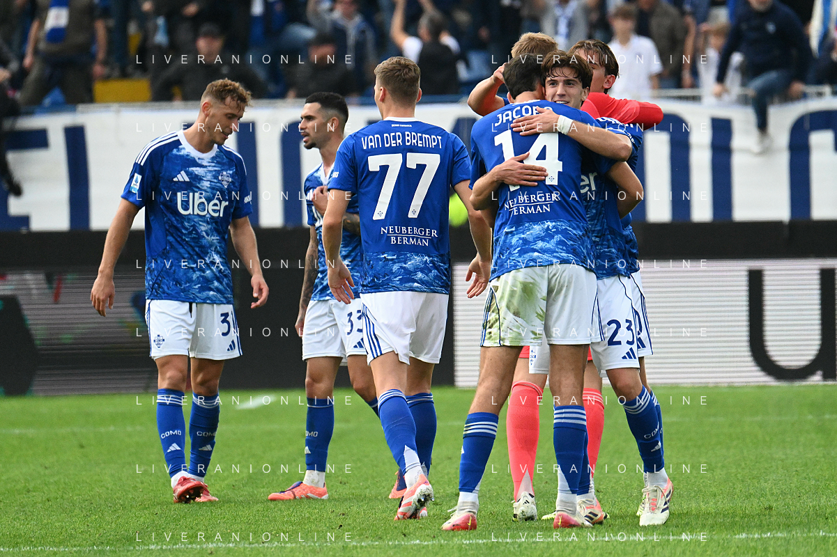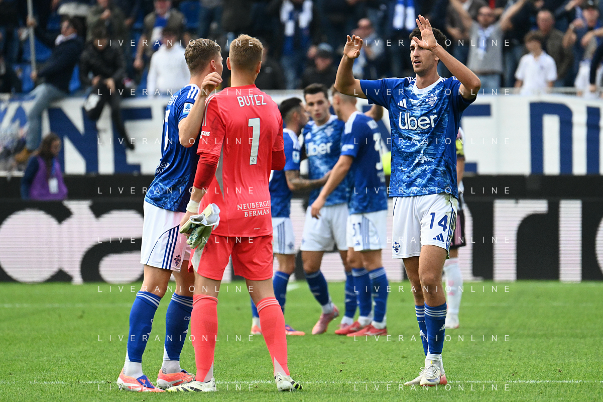 TVRG Como vs Juventus nella foto Cesc Fabregas allenatore Como in campo a fine gara esultanza a fine partita Como 19-10-2025 Stadio Giuseppe Sinigaglia Como vs Juventus Campionato Serie A Enilive - 7a giornata foto Roberto Garavaglia/Agenzia Aldo Liverani sas