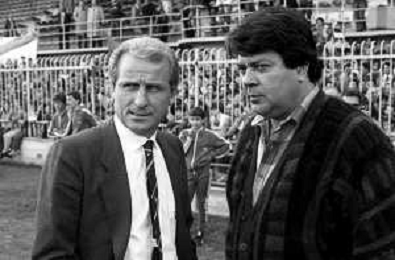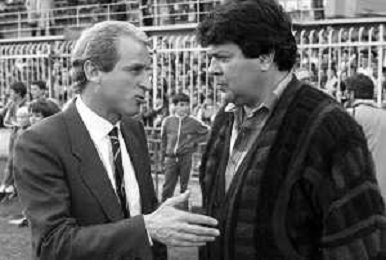 NEG- RETROSPETTIVA GIOVANNI TRAPATTONI ALLENATORE JUVENTUS NELLA FOTO GIOVANNI TRAPATTONI CON ERMINIO FAVALLI NELL’ANNO 1984 - 1985 AG ALDO LIVERANI SAS