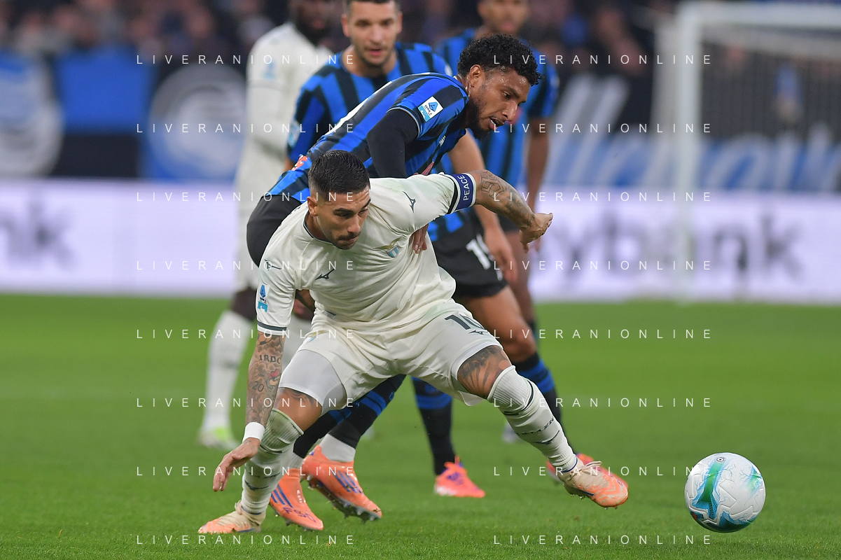 Matteo Cancellieri of SS Lazio competes for the ball with Honest Ahanor of Atalanta BC during Atalanta BC vs SS Lazio, 7° Serie A Enilive 2025-26 game at New Balance arena in Bergamo (BG), Italy, on October 19, 2025. (Photo by Davide Casentini) ag aldo liverani sas