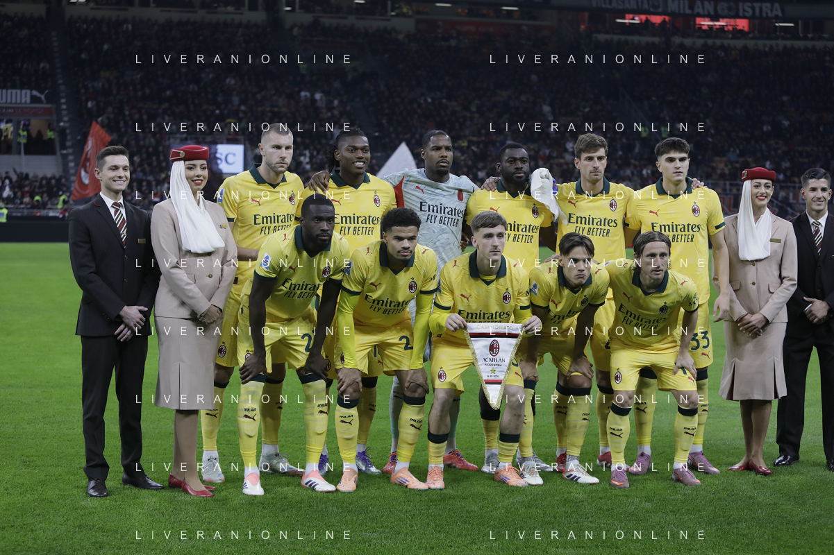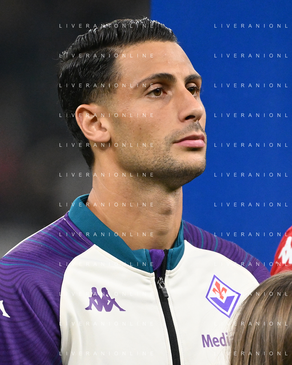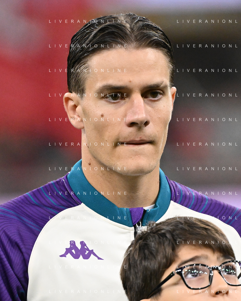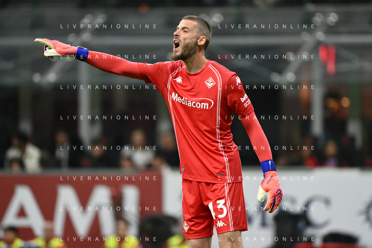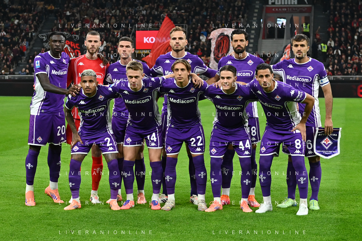 Milan vs Fiorentina nella foto formazione Fiorentina, in piedi da SX Moise Kean (Fiorentina), David De Gea (Fiorentina), Robin Gosens (Fiorentina), Marin Pongracic (Fiorentina), Pablo Marì (Fiorentina) e Luca Ranieri (Fiorentina); in basso da SX Dodò Domilson Cordeiro dos Santos (Fiorentina), Hans Nicolussi Caviglia (Fiorentina), Jacopo Fazzini (Fiorentina), Nicolò Fagioli (Fiorentina) e Rolando Mandragora (Fiorentina) Milano 19-10-2025 Stadio Giuseppe Meazza - San Siro Milan vs Fiorentina Campionato Serie A Enilive - 7a giornata foto Roberto Garavaglia/Agenzia Aldo Liverani sas