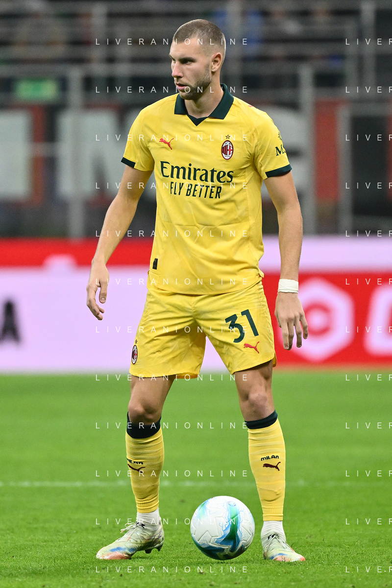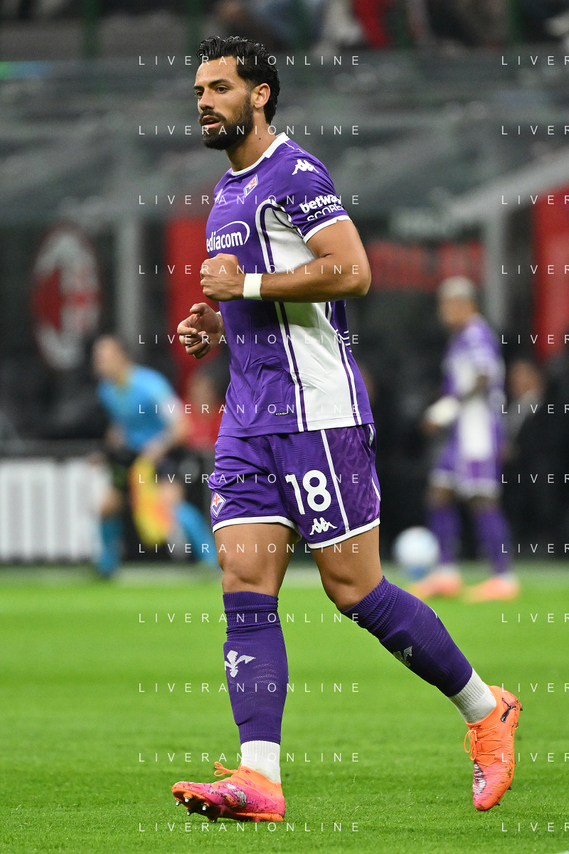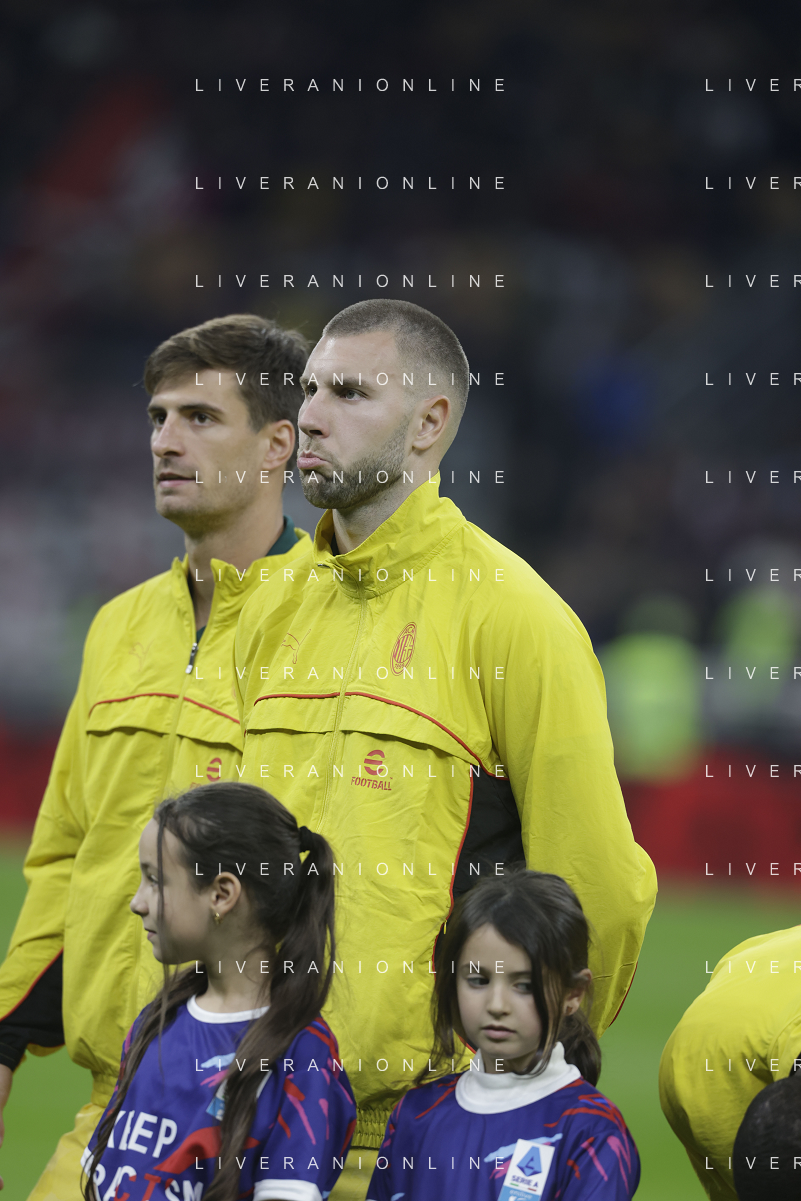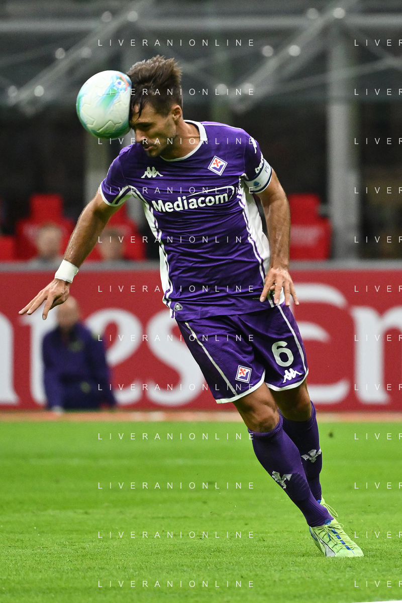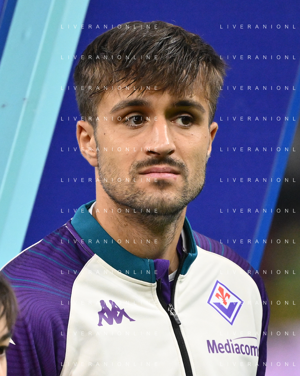 Milan vs Fiorentina nella foto formazione Fiorentina, in piedi da SX Moise Kean (Fiorentina), David De Gea (Fiorentina), Robin Gosens (Fiorentina), Marin Pongracic (Fiorentina), Pablo Marì (Fiorentina) e Luca Ranieri (Fiorentina); in basso da SX Dodò Domilson Cordeiro dos Santos (Fiorentina), Hans Nicolussi Caviglia (Fiorentina), Jacopo Fazzini (Fiorentina), Nicolò Fagioli (Fiorentina) e Rolando Mandragora (Fiorentina) Milano 19-10-2025 Stadio Giuseppe Meazza - San Siro Milan vs Fiorentina Campionato Serie A Enilive - 7a giornata foto Roberto Garavaglia/Agenzia Aldo Liverani sas