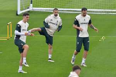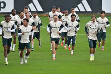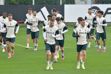 TVMV-Torino 21.10.2025 Continassa © Manuela Viganti/Agenzia Aldo Liverani Allenamento Juventus Rifinitura partita Champions League Real Madrid vs Juventus Nella foto: il gruppo durante l'allenamento ©TVMV Viganti - AGENZIA ALDO LIVERANI SAS