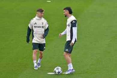 TVMV-Torino 21.10.2025 Continassa © Manuela Viganti/Agenzia Aldo Liverani Allenamento Juventus Rifinitura partita Champions League Real Madrid vs Juventus Nella foto: kenan yildiz e filip kostic ©TVMV Viganti - AGENZIA ALDO LIVERANI SAS