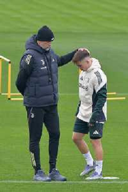 TVMV-Torino 21.10.2025 Continassa © Manuela Viganti/Agenzia Aldo Liverani Allenamento Juventus Rifinitura partita Champions League Real Madrid vs Juventus Nella foto: fabio miretti ©TVMV Viganti - AGENZIA ALDO LIVERANI SAS