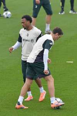 TVMV-Torino 21.10.2025 Continassa © Manuela Viganti/Agenzia Aldo Liverani Allenamento Juventus Rifinitura partita Champions League Real Madrid vs Juventus Nella foto: lois openda e andrea cambiaso ©TVMV Viganti - AGENZIA ALDO LIVERANI SAS
