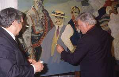 DIAP-RETROSPETTIVA ROD STEIGER ATTORE NELLA FOTO ROD STEIGER A CERNOBBIO NELL'ANNO 1989 CON SALVATORE FIUME AG ALDO LIVERANI SAS