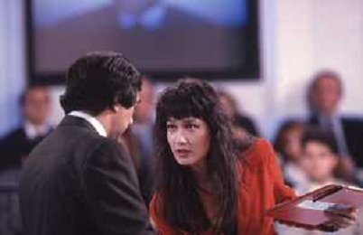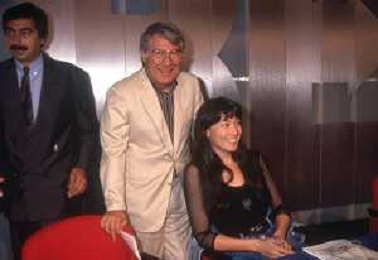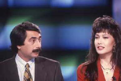 DIAP-RETROSPETTIVA KAY SANDWIK CONDUTTRICE TELEVISIVA E RADIOFONICA NELLA FOTO KAY SANDWIK CON MARINO BARTOLETTI CONDUCE LA TRASMISSIONE “PRESSING“ NELL'ANNO 1990 AG ALDO LIVERANI SAS