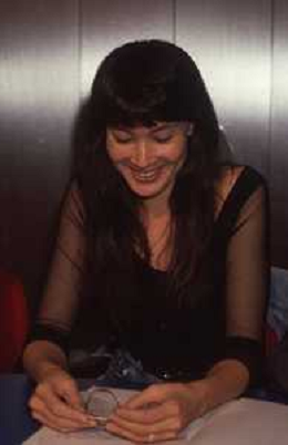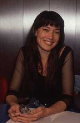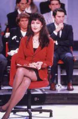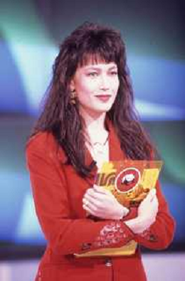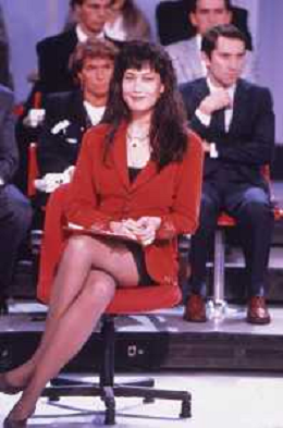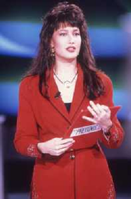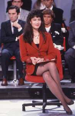 DIAP-RETROSPETTIVA KAY SANDWIK CONDUTTRICE TELEVISIVA E RADIOFONICA NELLA FOTO KAY SANDWIK CONDUCE LA TRASMISSIONE “PRESSING“ NELL'ANNO 1990 AG ALDO LIVERANI SAS