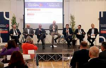 IMOLA 23 10 2025 OSSERVANZA CIRCONDARIO IMOLESE "CONFERENZA ECONOMICA" NELLA FOTO PIERANGELO RAFFINI,ANDREA COSTA,FABIO BACCHILEGA,GIORNALISTA ENRICO AGNESSI,AMILCARE RENZI,LUCA PALLADINO E CARLO ALBERTO GOLLINI FOTO GIANNI SANNA-AG ALDO LIVERANI SAS