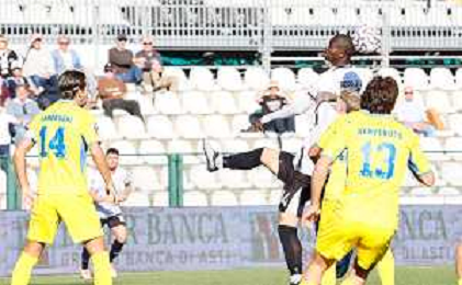 26-10-2025 VERCELLI-CAMPIONATO DI LEGA PRO PRO VERCELLI-PERGOLETTESE NELLA FOTO Colpo di testa di Sow: gol 1-0 con Pergolettese FOTO ANDREA MARANGON-AG ALDO LIVERANI SAS