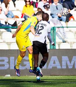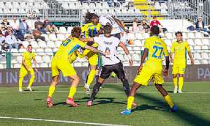 26-10-2025 VERCELLI-CAMPIONATO DI LEGA PRO PRO VERCELLI-PERGOLETTESE NELLA FOTO Contrasto aereo su Agra Akpro FOTO ANDREA MARANGON-AG ALDO LIVERANI SAS