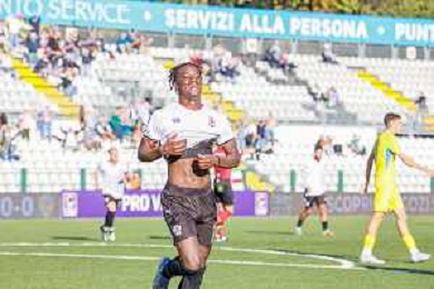26-10-2025 VERCELLI-CAMPIONATO DI LEGA PRO PRO VERCELLI-PERGOLETTESE NELLA FOTO Esultanza Sow dopo il gol 1-0 con Pergolettese FOTO ANDREA MARANGON-AG ALDO LIVERANI SAS