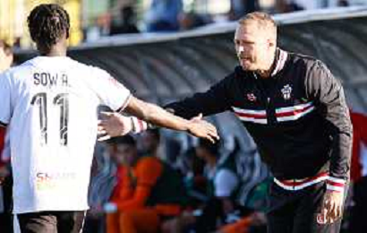 26-10-2025 VERCELLI-CAMPIONATO DI LEGA PRO PRO VERCELLI-PERGOLETTESE NELLA FOTO Sow A. esultanza con Mister Santoni FOTO ANDREA MARANGON-AG ALDO LIVERANI SAS