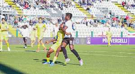 26-10-2025 VERCELLI-CAMPIONATO DI LEGA PRO PRO VERCELLI-PERGOLETTESE NELLA FOTO Sow contrastato da Aidoo FOTO ANDREA MARANGON-AG ALDO LIVERANI SAS
