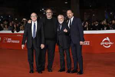 Roma 26 Ottobre 2025 Rome Film Festival - Red Carpet di chiusura con la quarta stagione di "Vita da Carlo" Nella Foto: Carlo Verdone, Salvatore Nastasi, Aurelio De Laurentiis, Luigi De Laurentiis Foto Credit: Andrea Bracaglia AG ALDO LIVERANI SAS