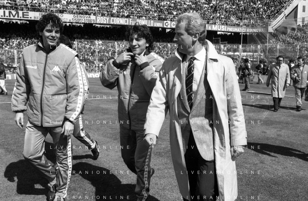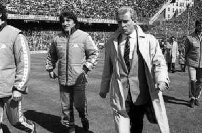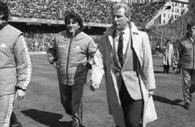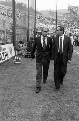 NEG- RETROSPETTIVA GIOVANNI TRAPATTONI ALLENATORE JUVENTUS NELLA FOTO GIOVANNI TRAPATTONI CON OSVALDO BAGNOLI (ALLENATORE VERONA) NELL’ANNO 1985-1986 AG ALDO LIVERANI SAS