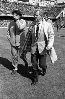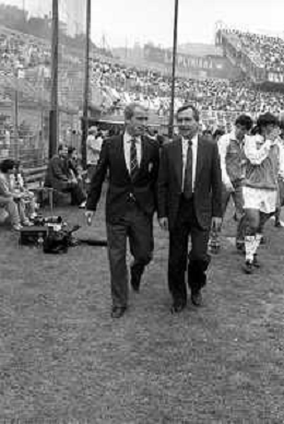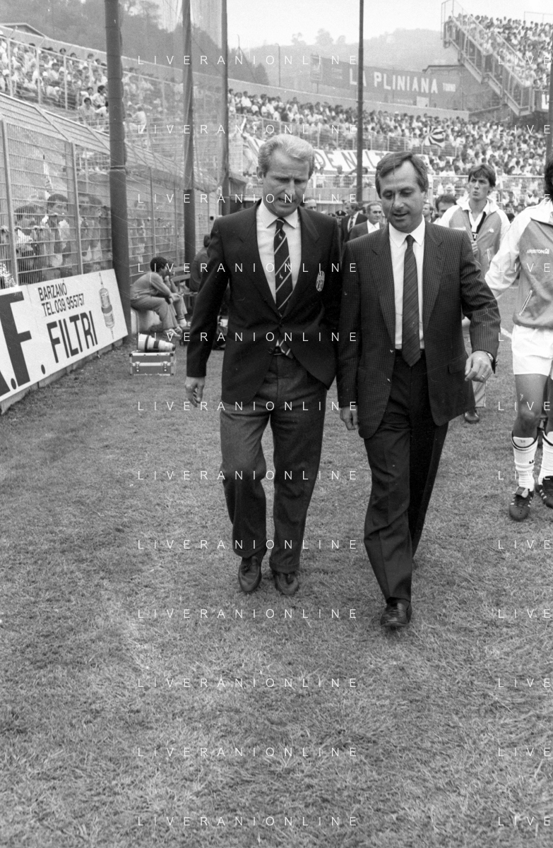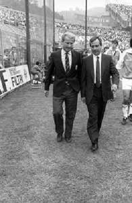 NEG- RETROSPETTIVA GIOVANNI TRAPATTONI ALLENATORE JUVENTUS NELLA FOTO GIOVANNI TRAPATTONI CON TOMISLAV IVIC (ALLENATORE COMO) NELL’ANNO 1985-1986 AG ALDO LIVERANI SAS