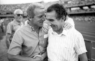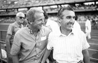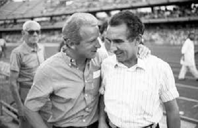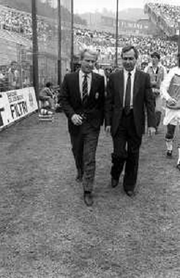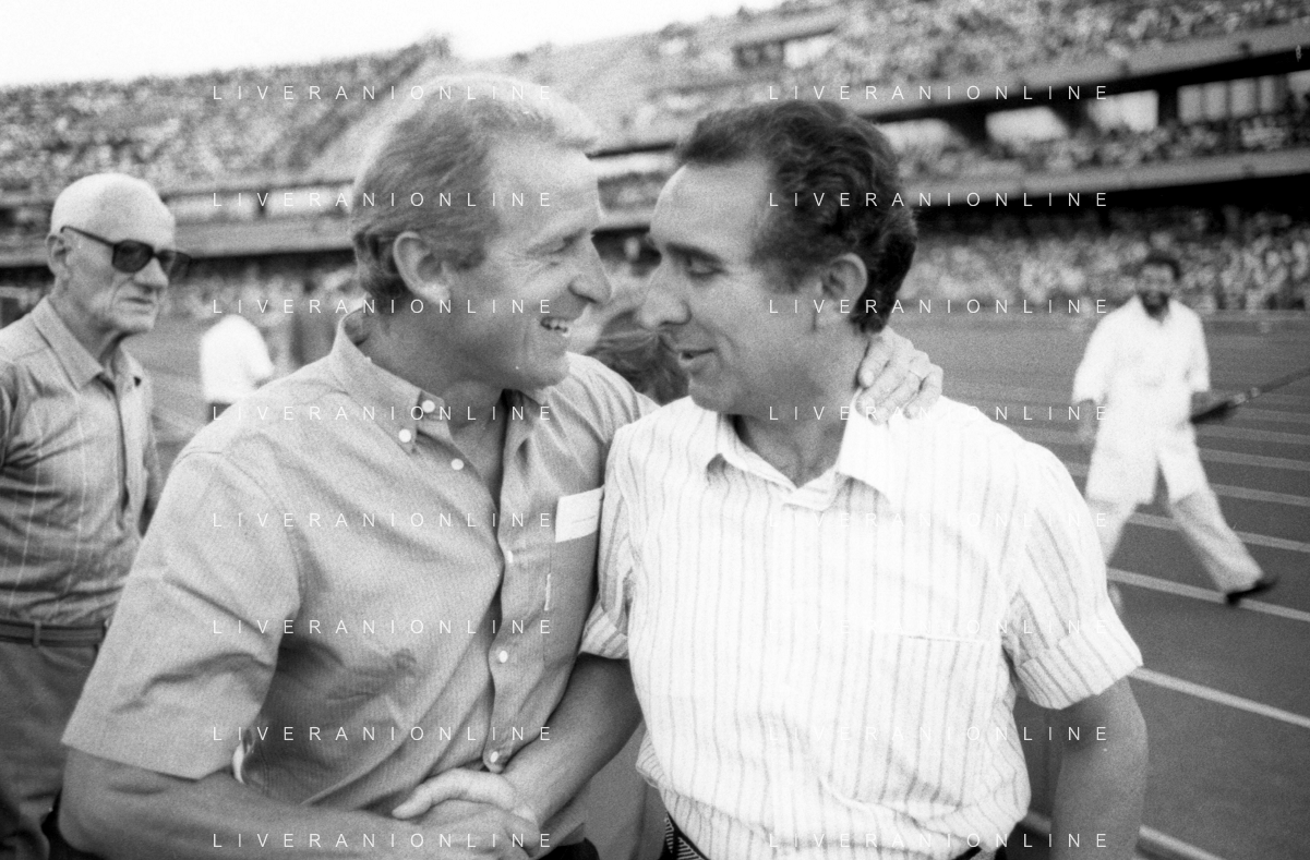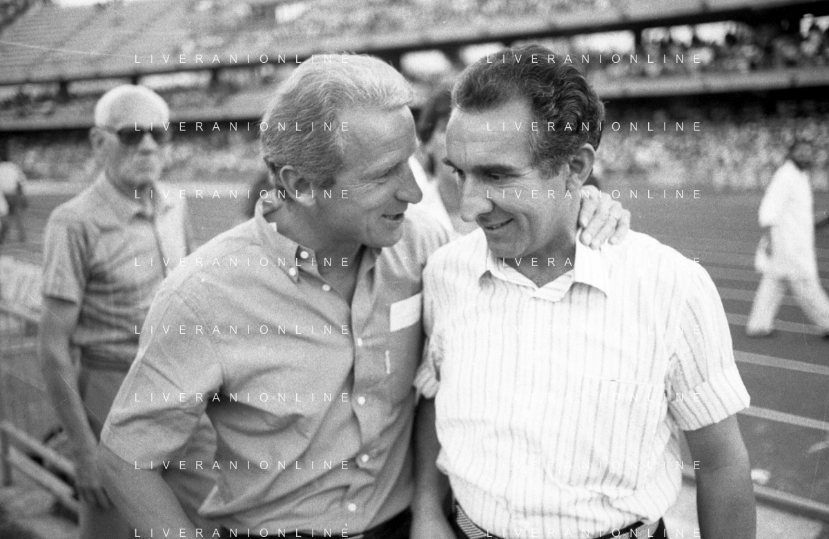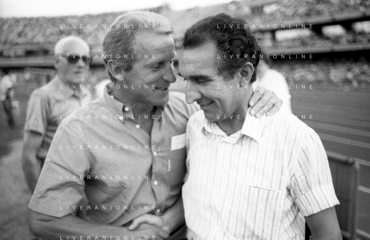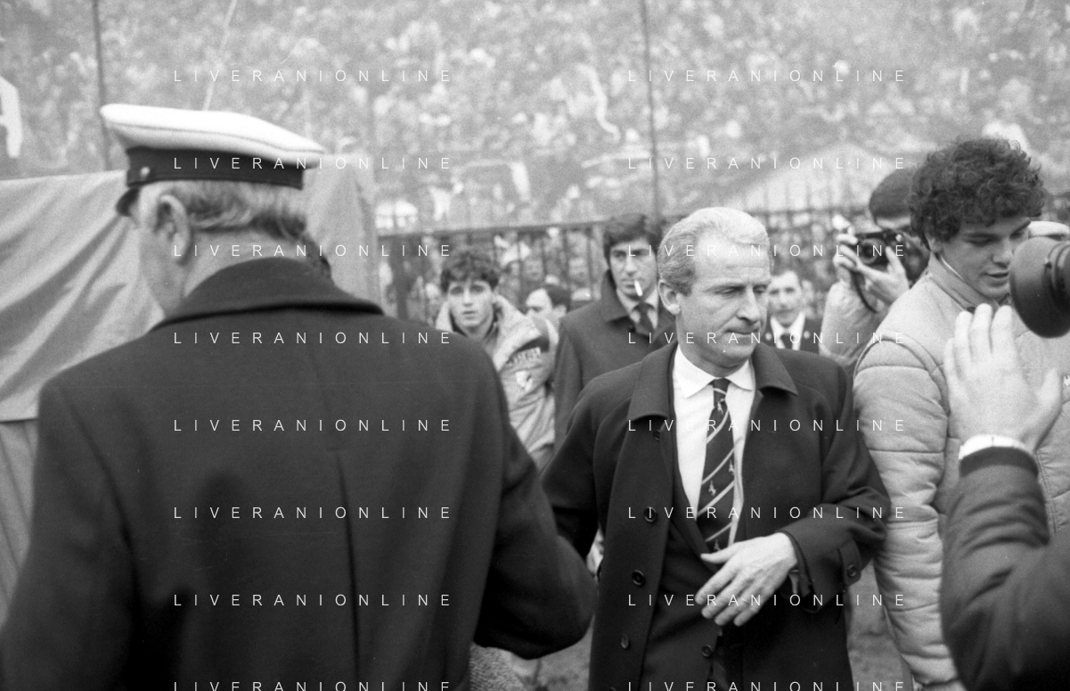 NEG- RETROSPETTIVA GIOVANNI TRAPATTONI ALLENATORE JUVENTUS NELLA FOTO GIOVANNI TRAPATTONI CON NILS LIEDHOLM (ALLENATORE MILAN ) NELL’ANNO 1985-1986 AG ALDO LIVERANI SAS