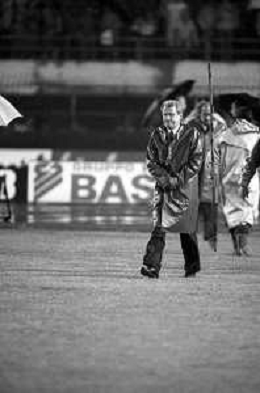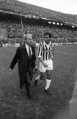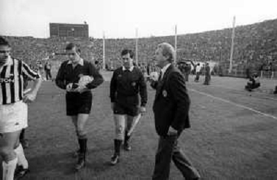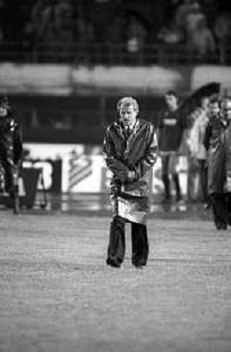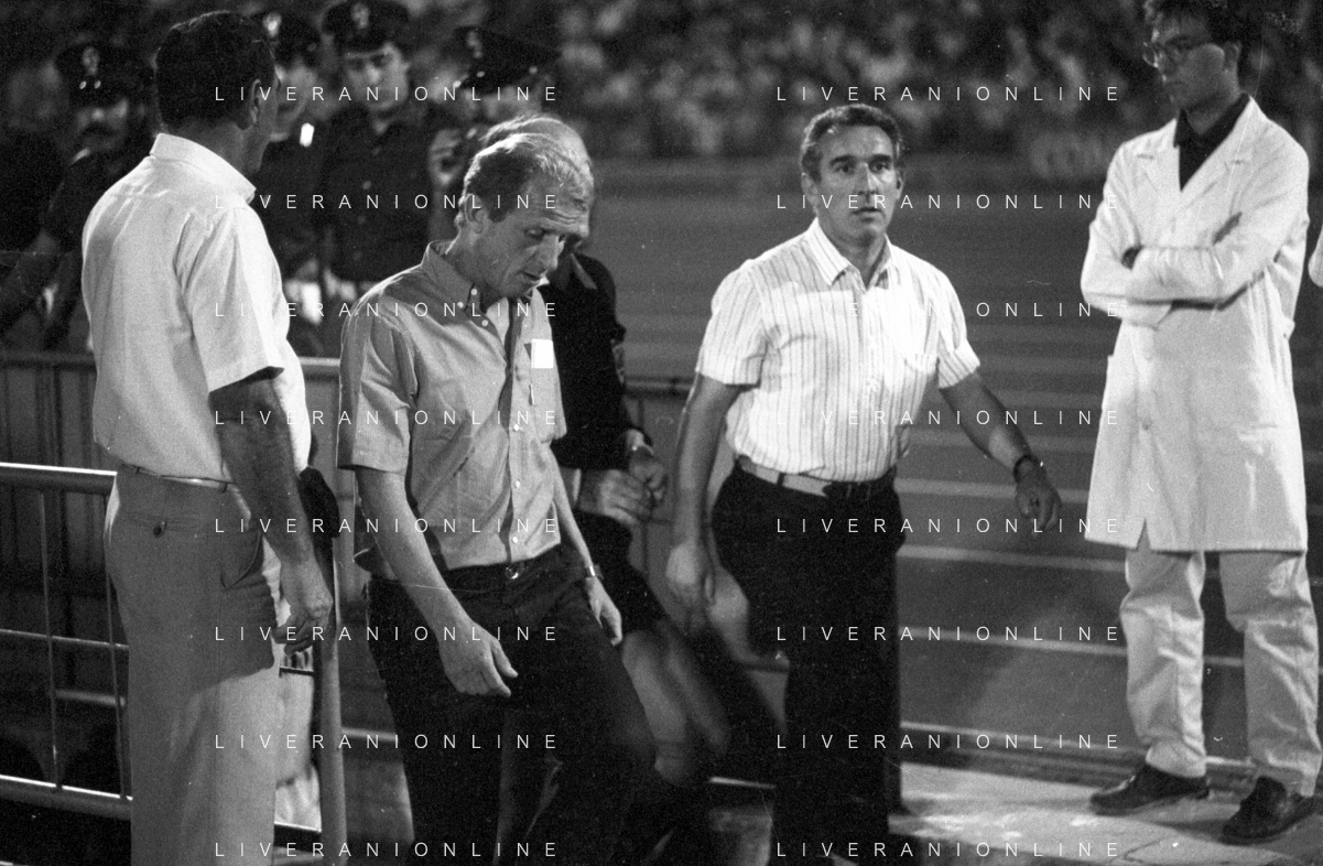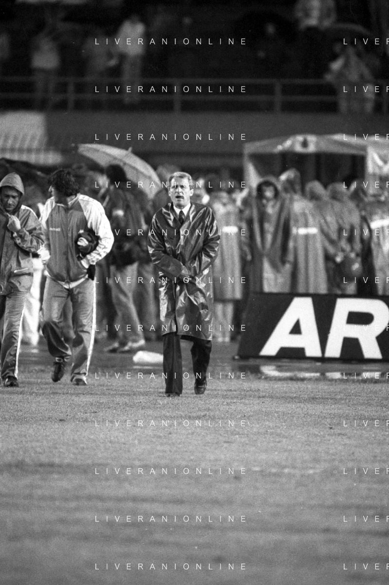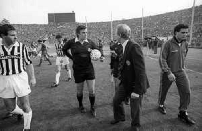 NEG- RETROSPETTIVA GIOVANNI TRAPATTONI ALLENATORE JUVENTUS NELLA FOTO GIOVANNI TRAPATTONI CON L’ARBITRO LUIGI AGNOLIN NELL’ANNO 1985-1986 AG ALDO LIVERANI SAS