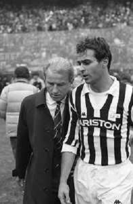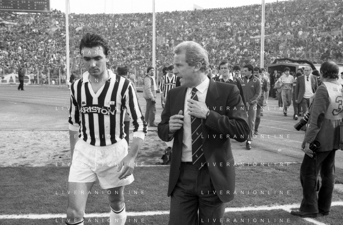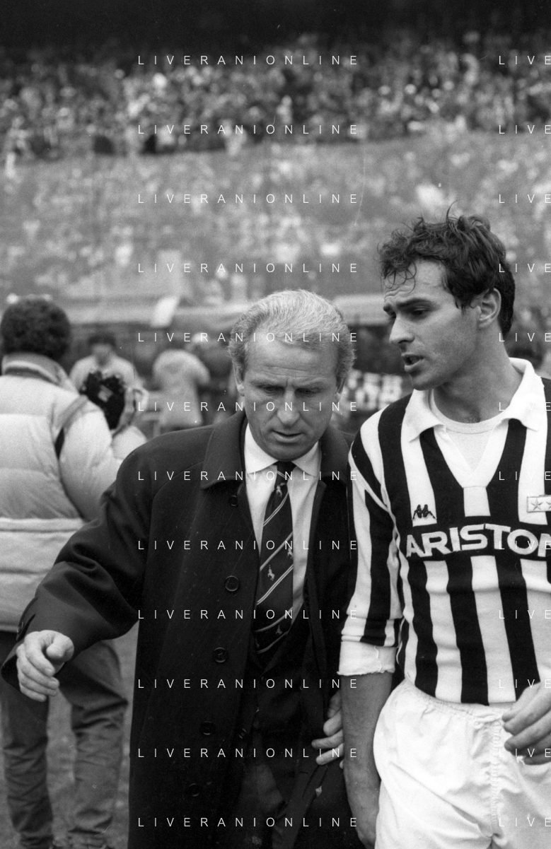 NEG- RETROSPETTIVA GIOVANNI TRAPATTONI ALLENATORE JUVENTUS NELLA FOTO GIOVANNI TRAPATTONI CON IL CALCIATORE MASSIMO BRIASCHI NELL’ANNO 1985-1986 AG ALDO LIVERANI SAS