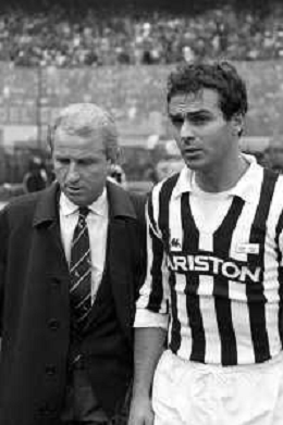 NEG- RETROSPETTIVA GIOVANNI TRAPATTONI ALLENATORE JUVENTUS NELLA FOTO GIOVANNI TRAPATTONI CON IL CALCIATORE MASSIMO MAURO NELL’ANNO 1985-1986 AG ALDO LIVERANI SAS