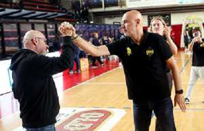 IMOLA 29 10 2025 VIRTUS IMOLA BASKET-CONSULTINVEST LORETO PESARO SERIE B1 93-85 NELLA FOTO GIANLUIGI GALETTI ALLENATORE VIRTUS IMOLA E SUO VICE AKI ZARIFI DOPO PARTITA FOTO GIANNI SANNA-AG ALDO LIVERANI SAS