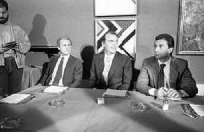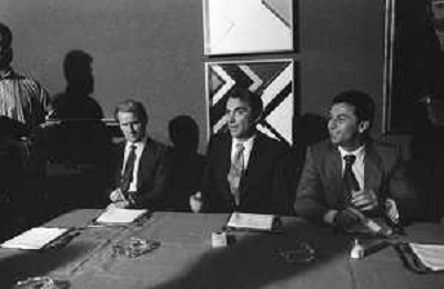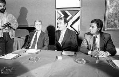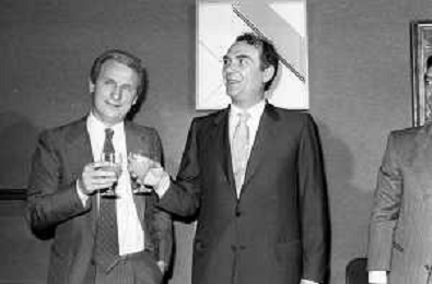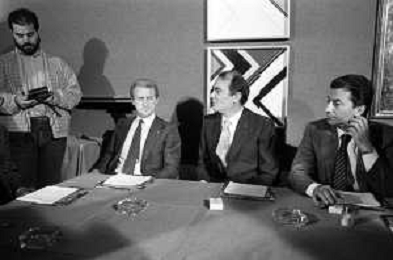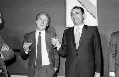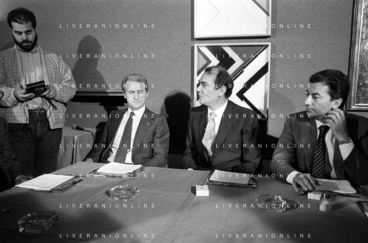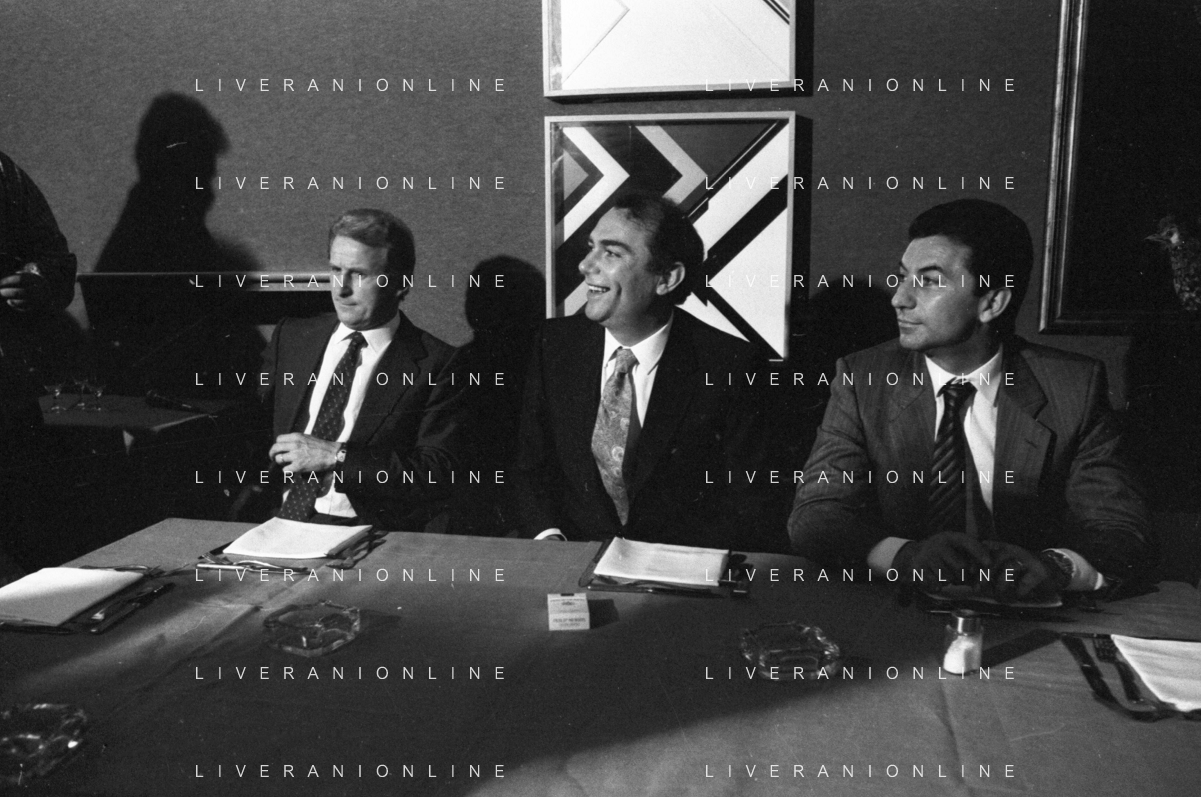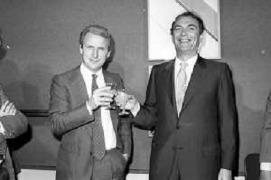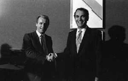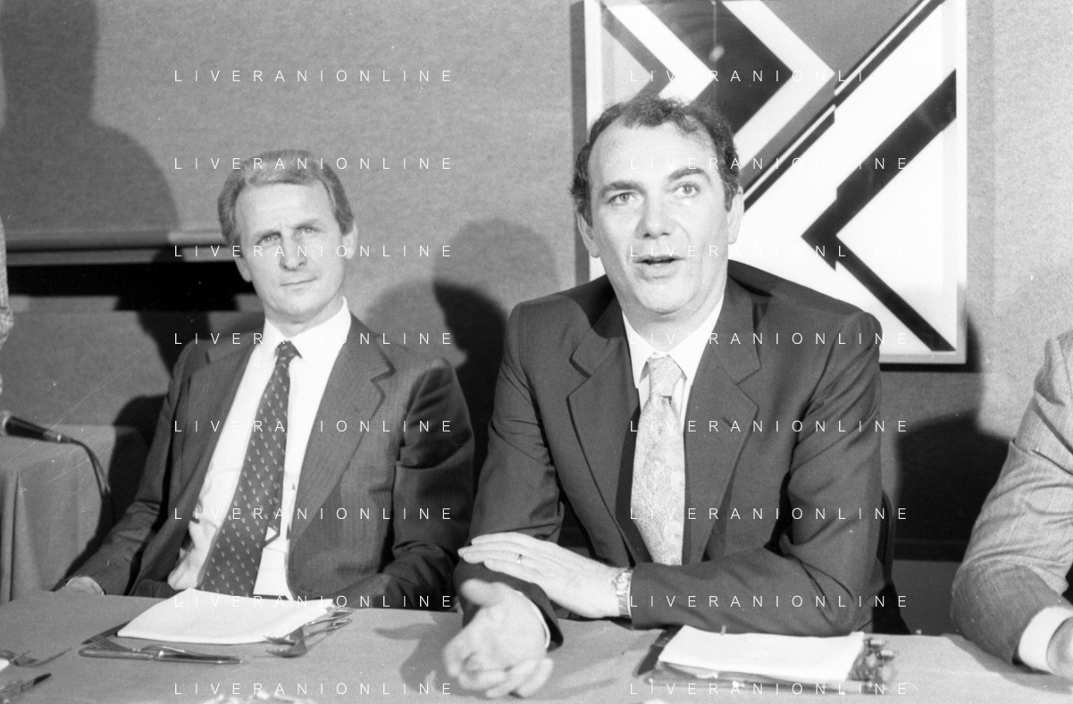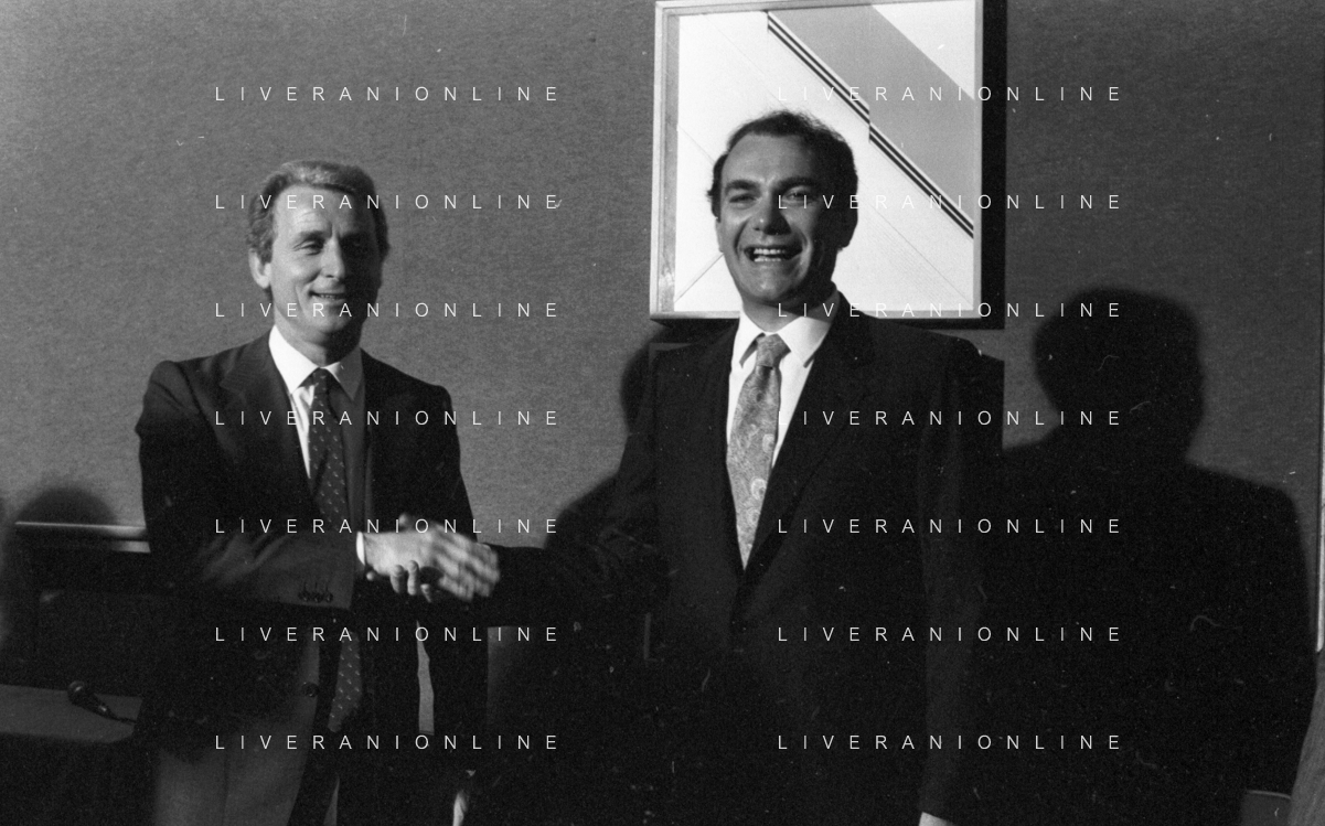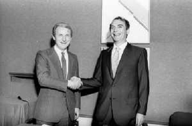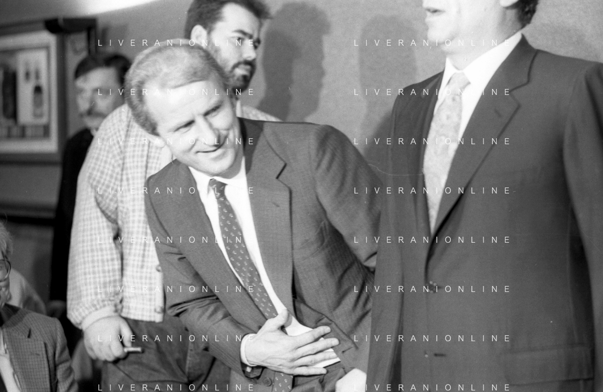 NEG- RETROSPETTIVA GIOVANNI TRAPATTONI ALLENATORE INTER NELLA FOTO GIOVANNI TRAPATTONI CON IL PRESIDENTE ERNESTO PELLEGRINI ALLA SUA PRESENTAZIONE COME NUOVO ALLENATORE INTER CALCIO NELL’ANNO 1986 AG ALDO LIVERANI SAS